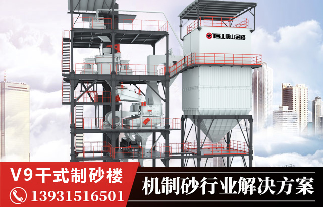 唐山金路V9制砂樓采用立軸沖擊式破碎機和空氣篩組成的返回式閉路系統(tǒng),大幅的增加了原來難以生產(chǎn)的0.6mm到0.15mm之間的粒度。實現(xiàn)了粒度、粒形都可以與天然砂相比擬的機制凈砂。并且通過加濕拌合機可以設(shè)定適當(dāng)?shù)暮?,不會產(chǎn)生產(chǎn)品粒度離析的問題。